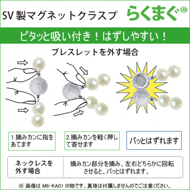 ピタっと吸いつき!はずしやすいマグネットクラスプ。独自開発の技術で磁力漏れを大幅カット。ピコマグは商品同士がくっつかないのでキズがつきません。掴みカンを軽く押し寄せると『パッ』と外す事ができます。
